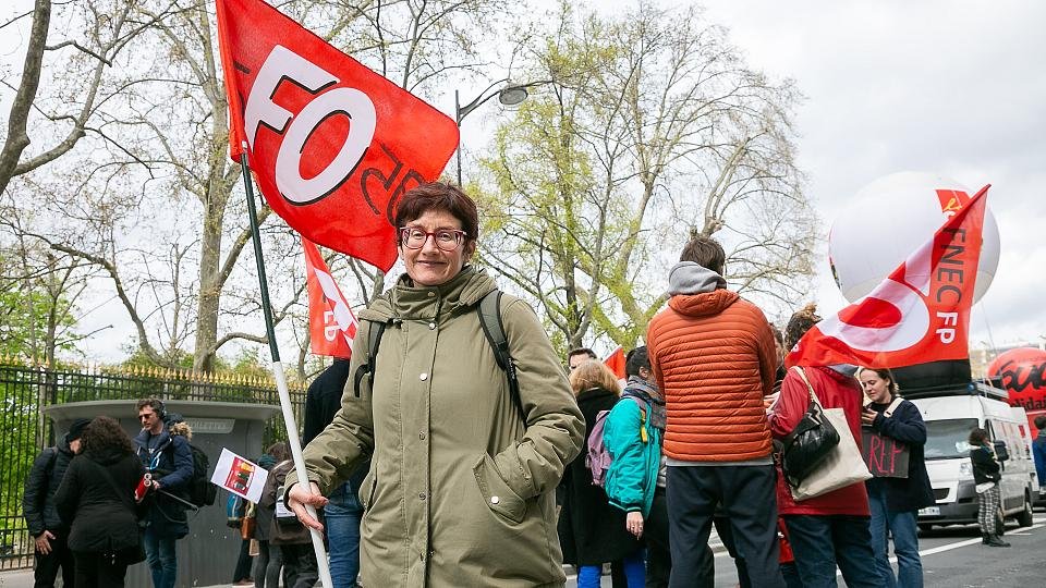 au collège, en mathématiques et en français, Christine Marchetti-Hakani est de toutes les manifestations parisiennes. Pour la troisième mobilisation organisée dans la capitale le 2 avril, en sus d’un appel national des enseignants à la grève, la secrétaire départementale lycées-collèges dans le Val-d’Oise de la FNEC FP-FO était facilement repérable sous son drapeau rouge FO, porté haut et personnalisé d’un 95 en lettres noires. L’école publique n’est pas faite pour trier