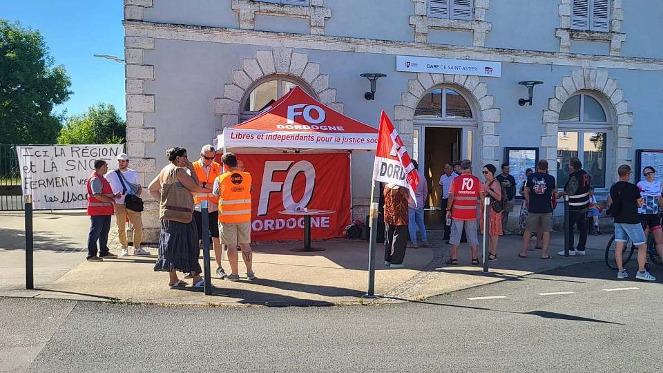 En Dordogne, les guichetiers des gares ne seront pas remplacés par des machines. La SNCF, qui avait annoncé un programme de réduction de la présence humaine dans plusieurs dizaines de gares de la région Nouvelle Aquitaine, vient de renoncer à son plan pour le département de la Dordogne. Cela fait suite à un rassemblement organisé le 28 juin par FO devant la gare de Saint-Astier, et qui a réuni une soixantaine de personnes, élus, usagers et cheminots.
