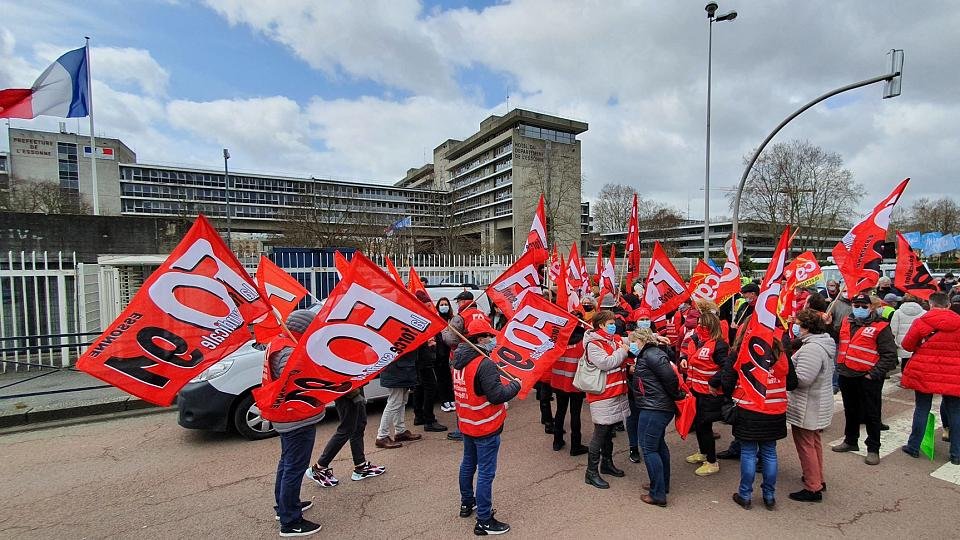 Quelque 300 personnes venues de toute l’Ile-de-France et même de l’Eure se sont rassemblées le 17 mars devant la préfecture de l’Essonne, à l’appel de FO, dans le cadre d’une intersyndicale. Les manifestants, brandissant de nombreux drapeaux, sont venus soutenir et défendre la Bourse du travail d’Evry, menacée de fermeture.