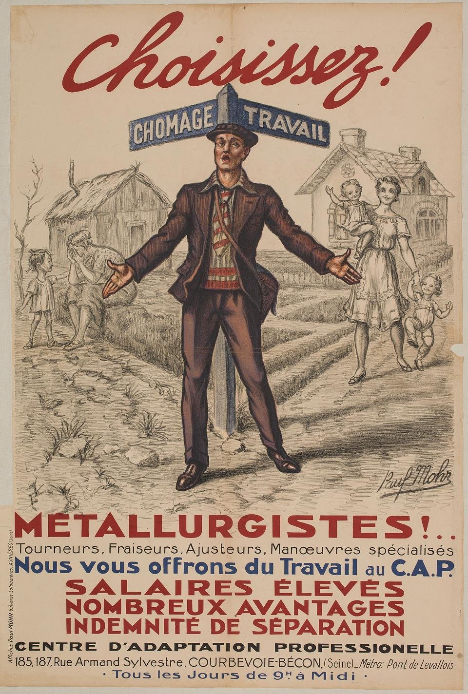 La crise de 1929 fait exploser le chômage dans le monde (25 % aux États-Unis, 33 % en Allemagne). À la Libération, le plein emploi est une revendication du programme du CNR. De Gaulle, à peine revenu au pouvoir, incite à la création d’un système d’assurance chômage (Assedic, Unédic) et déclare : Il va être fondé, institué par coopération entre le patronat et les syndicats, un fonds destiné au maintien de l’emploi et assurant aux travailleurs qui tomberaient en chômage un supplément portant l’allocation aux environs du salaire minimum.