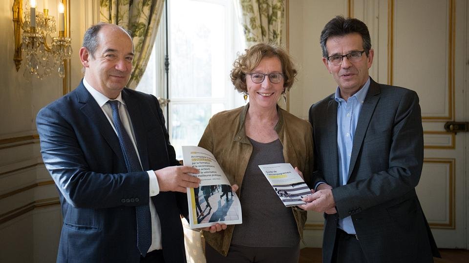 Jean-Dominique Simonpoli, directeur général de l’association Dialogues, et Gilles Gateau, DRH d’Air France, ont remis le 16 février, à la ministre du Travail, un rapport intitulé Accompagner la dynamique du dialogue social et la reconnaissance de ses acteurs et par la valorisation des meilleures pratiques
