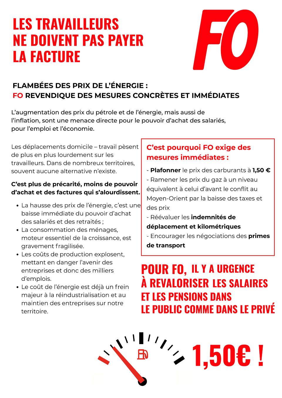 Pour FO, il y a urgence à revaloriser les salaires et les pensions dans le public comme dans le privé.