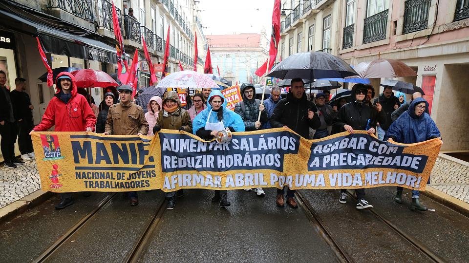 D’après la CGTP-IN, la plus ancienne confédération syndicale, trois salariés sur quatre sont employés en contrats courts, avec un salaire moyen de 888 euros contre 1 078 euros pour les contrats durables. La confédération estime également la perte de pouvoir d’achat des ménages à 5,5 % depuis 2021.