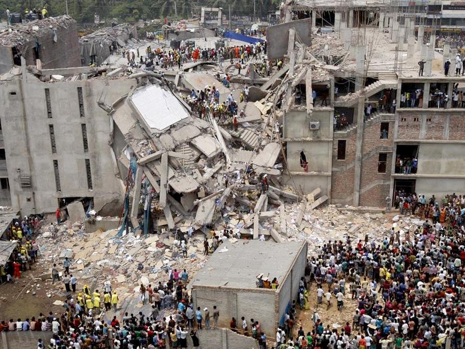 « Dhaka Savar Building Collapse » par rijans — Flickr : Dhaka Savar Building Collapse. Sous licence Creative Commons Attribution-Share Alike 2.0 via Wikimedia Commons